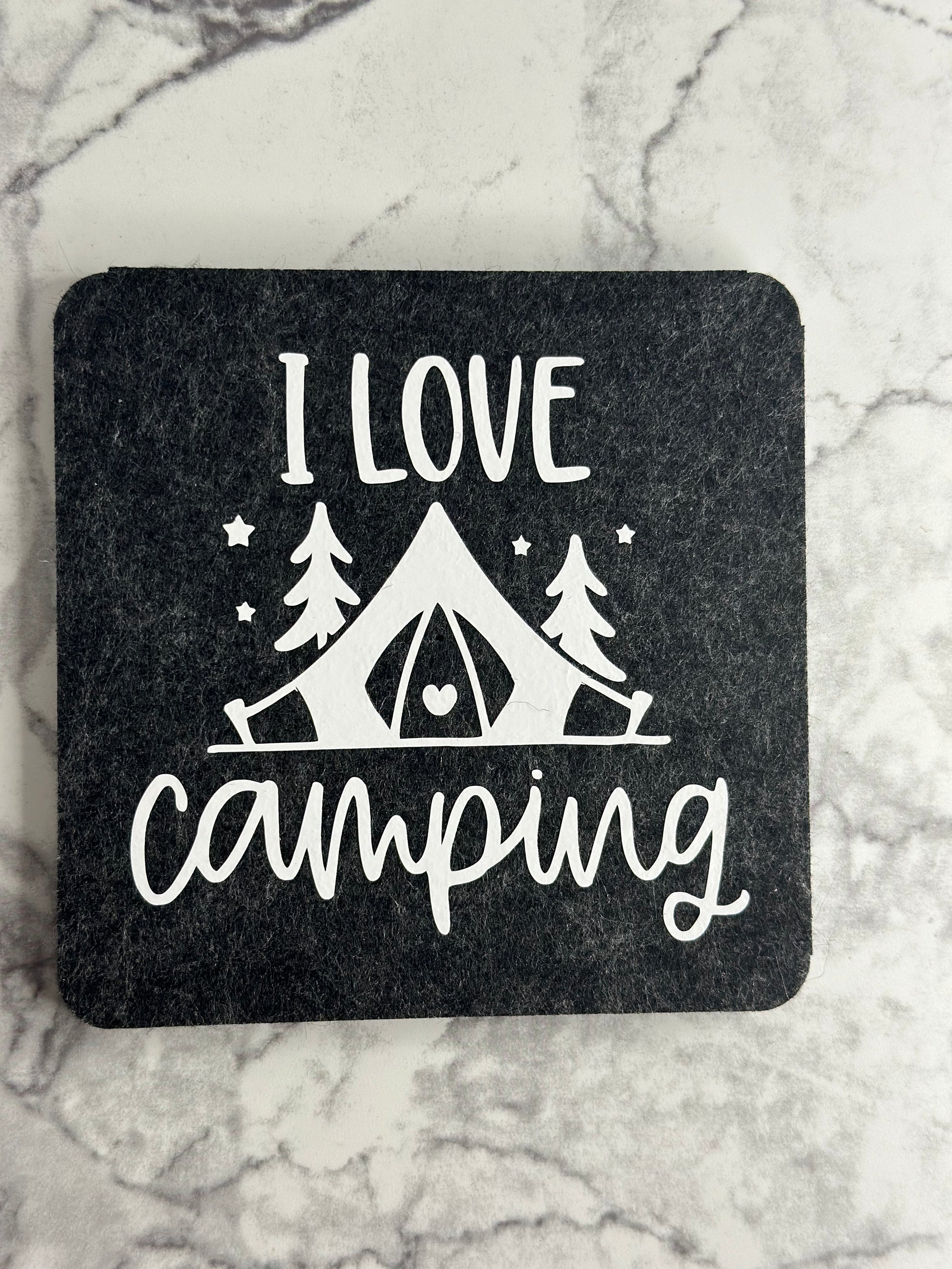 Natürlich kommt der „CAMPING LOVE „ Filzuntersetzer nicht alleine. Passend dazu kommt der „I LOVE CAMPING“ dazu.