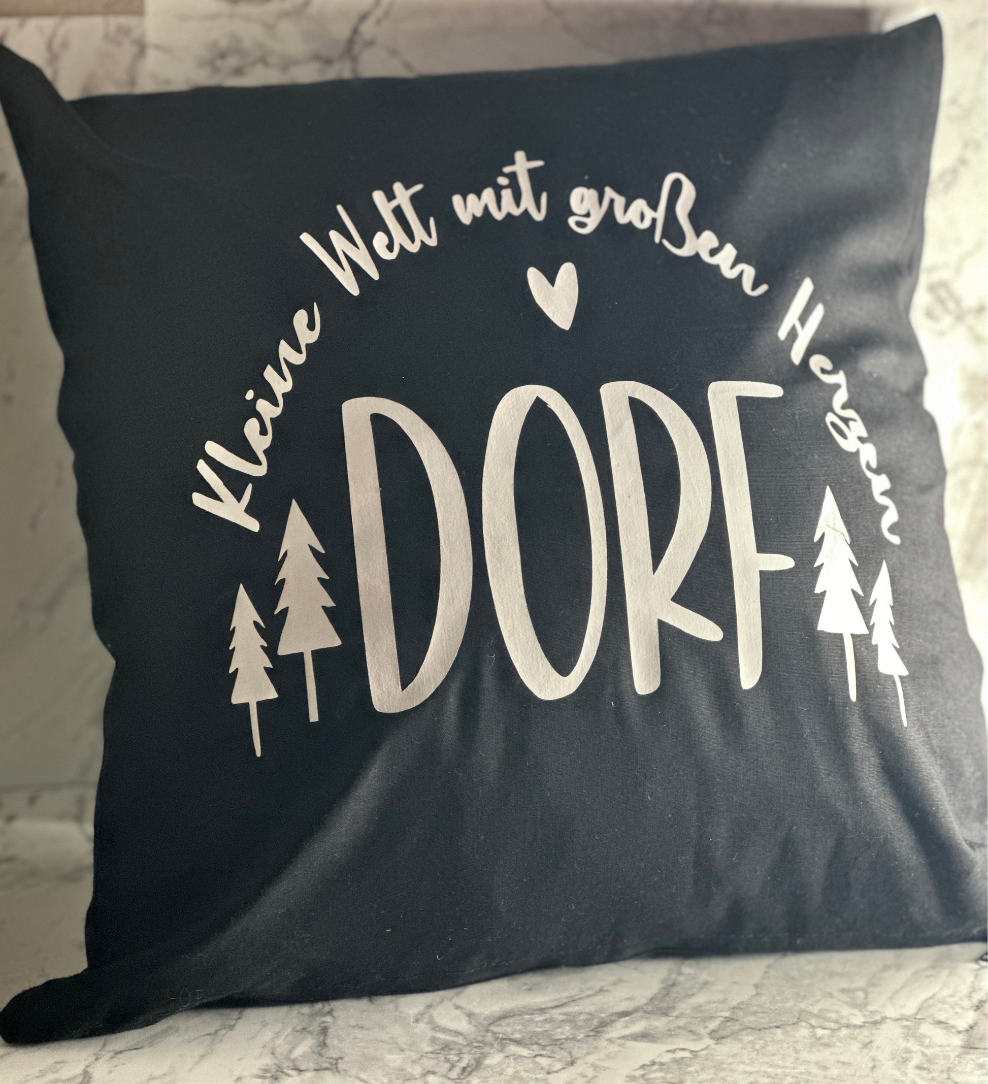 Wunderschönes Baumwollkissen mit 100%Baumwolle in der Farbe schwarz mit tollen Spruch für alle vom Dorf. Die Kissenfüllung ist für Allergiker super geeignet.