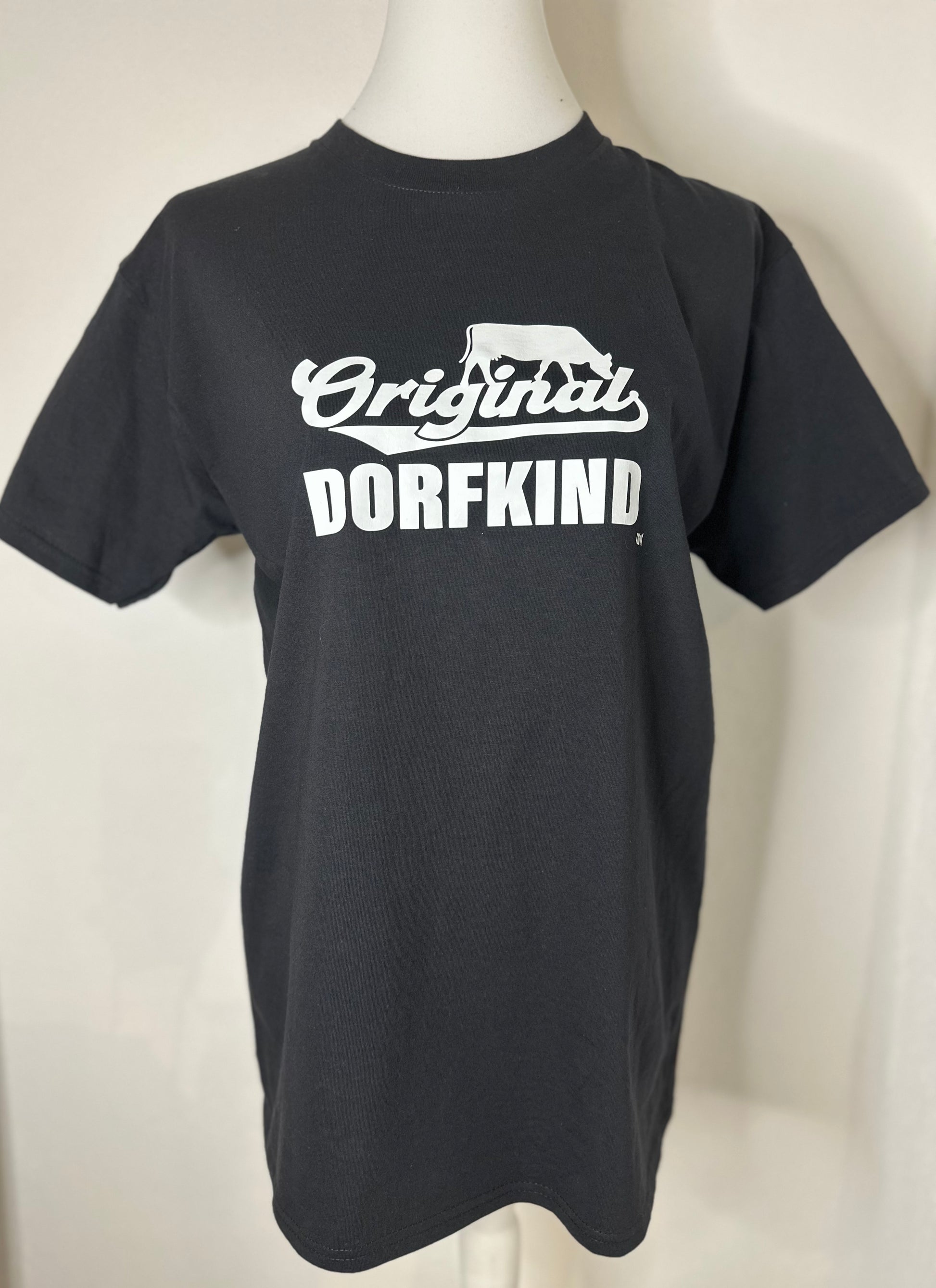 Leichtes, Bequemes schwarzes T-Shirt mit „Original Dorfkind Kuh“ Aufschrift für jeden Anlass und Alltag und allen Dorfkindern.