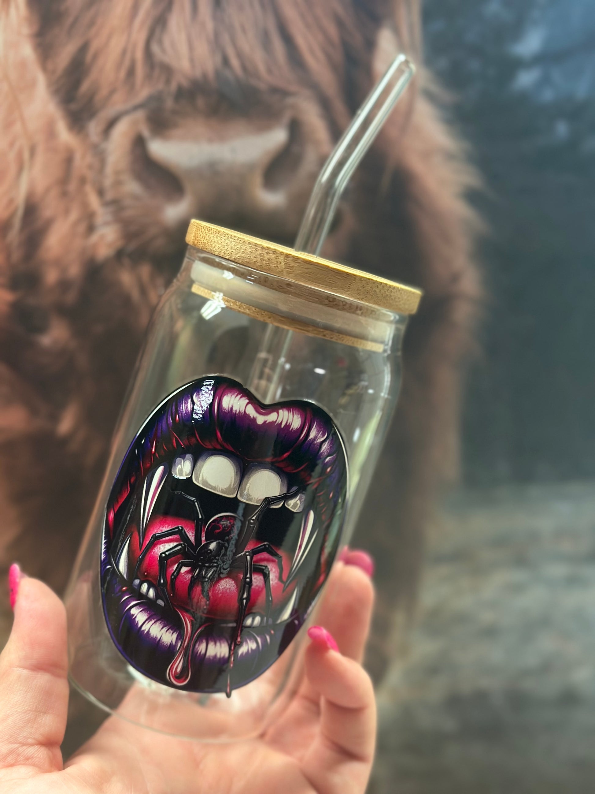Trinkglas mit Bambusdeckel „Spinnenmund“