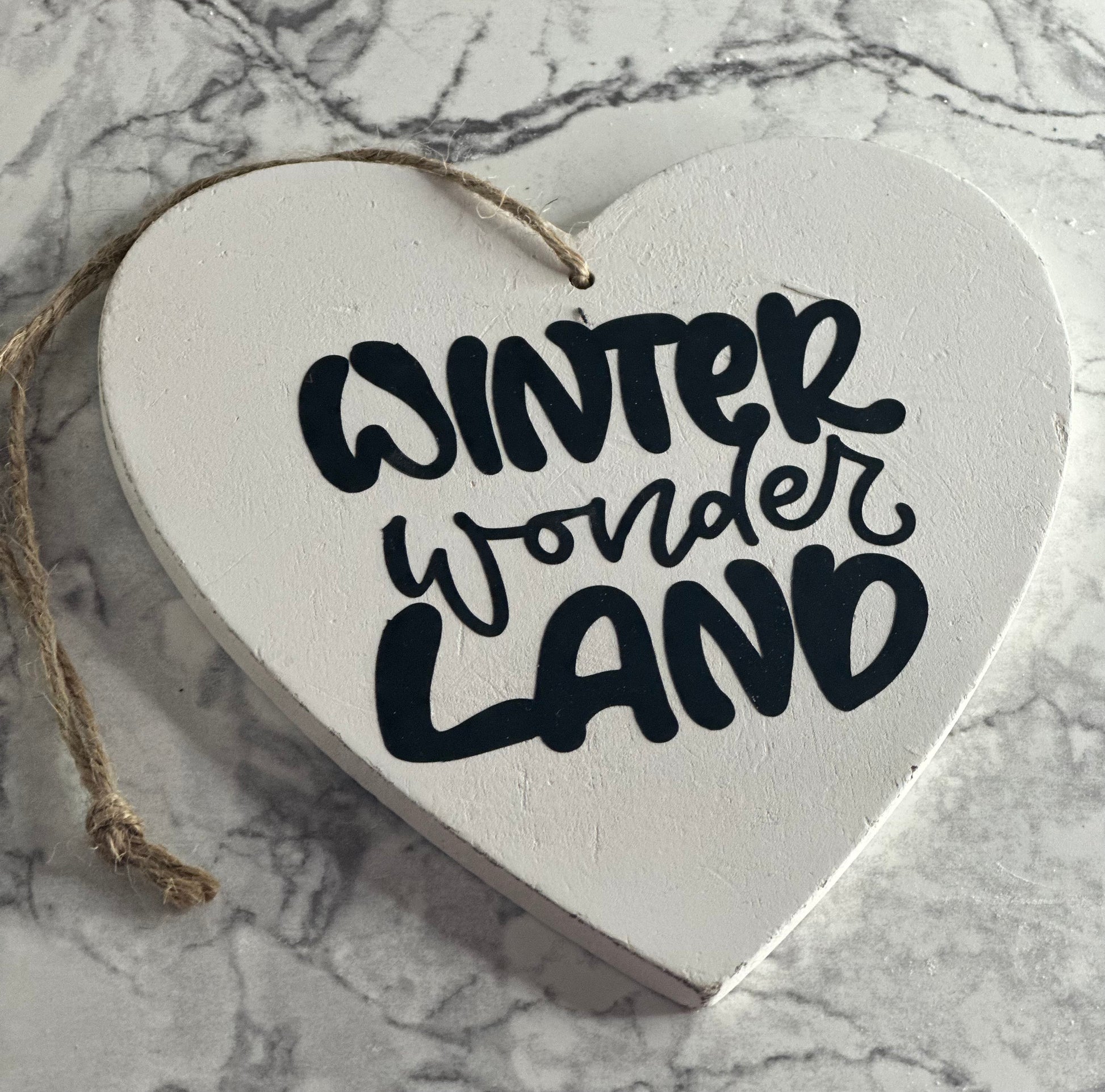 HOLZHERZ mit Aufschrift „WINTERWONDERLAND“ zum Dekorieren.