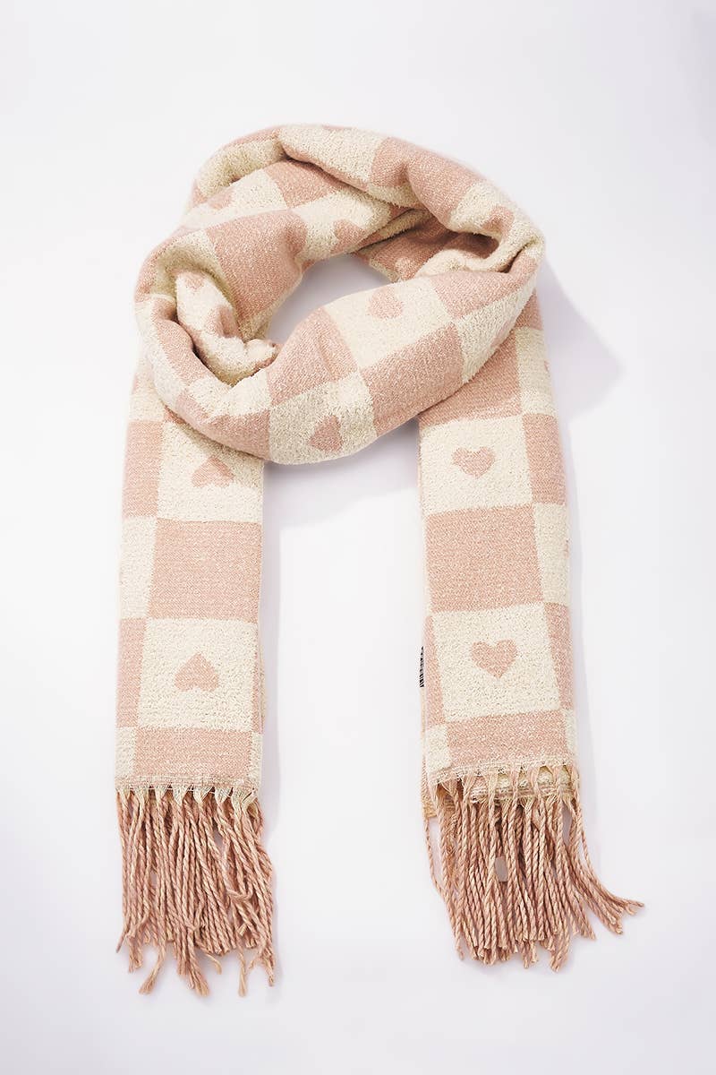 Wollschal mit Karomuster und Herz – Trendiges Accessoire, entworfen für den professionellen Markt, ideal, um eine Herbst/Winter-Kollektion mit einem eleganten und vielseitigen Stück zu ergänzen. Hergestellt aus 30% Wolle - 70% Viskose, bietet dieses Modell ein hervorragendes Gleichgewicht zwischen Komfort, Widerstandsfähigkeit und Pflegeleichtigkeit. Sein sorgfältiges Design wird Kunden ansprechen, die einen schicken und zeitlosen Stil suchen, der zu verschiedenen Modewelten passt.